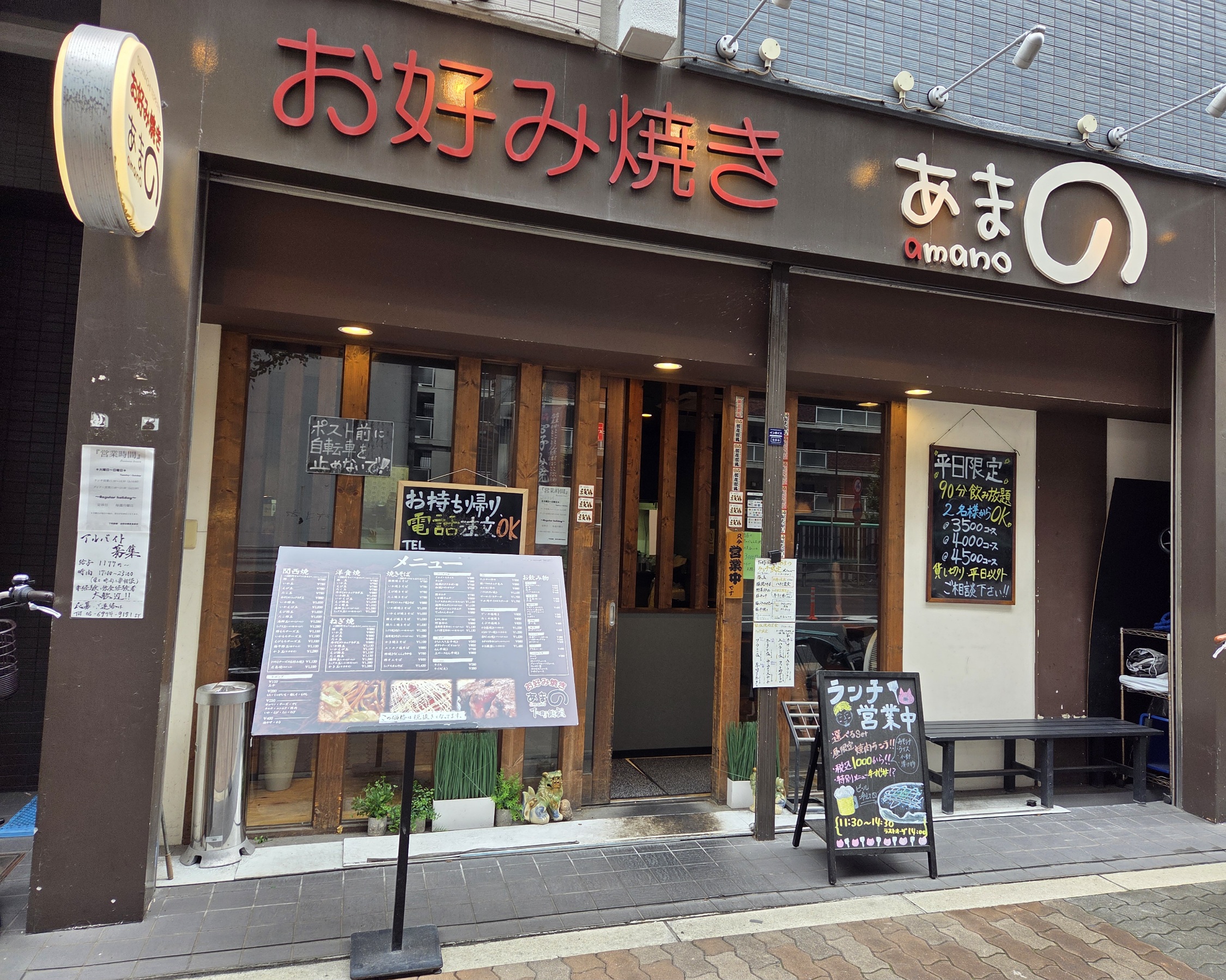 昼ご飯を食べに、深江橋から徒歩5分ほどの中央大通り沿いにある、お好み焼き屋さん『あまの』へ行ってきました。