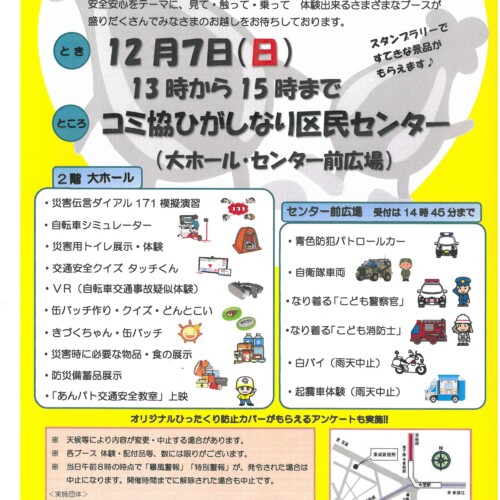 区役所・市役所 2025.11.17区役所・市役所, 大阪市, 大阪府, 子育て・ファミリー, 学ぶ・スクール, 東成区 第18回ひがしなり安全安心フェスタを開催します 第18回ひがしなり安全安心フェスタ開催します(入場無料) 「安全・安心・防災」がテーマのふれあいイベント! 区役所・官公署・安全安心に関わる企業等がさ... 2025.11.17区役所・市役所, 大阪市, 大阪府, 子育て・ファミリー, 学ぶ・スクール, 東成区